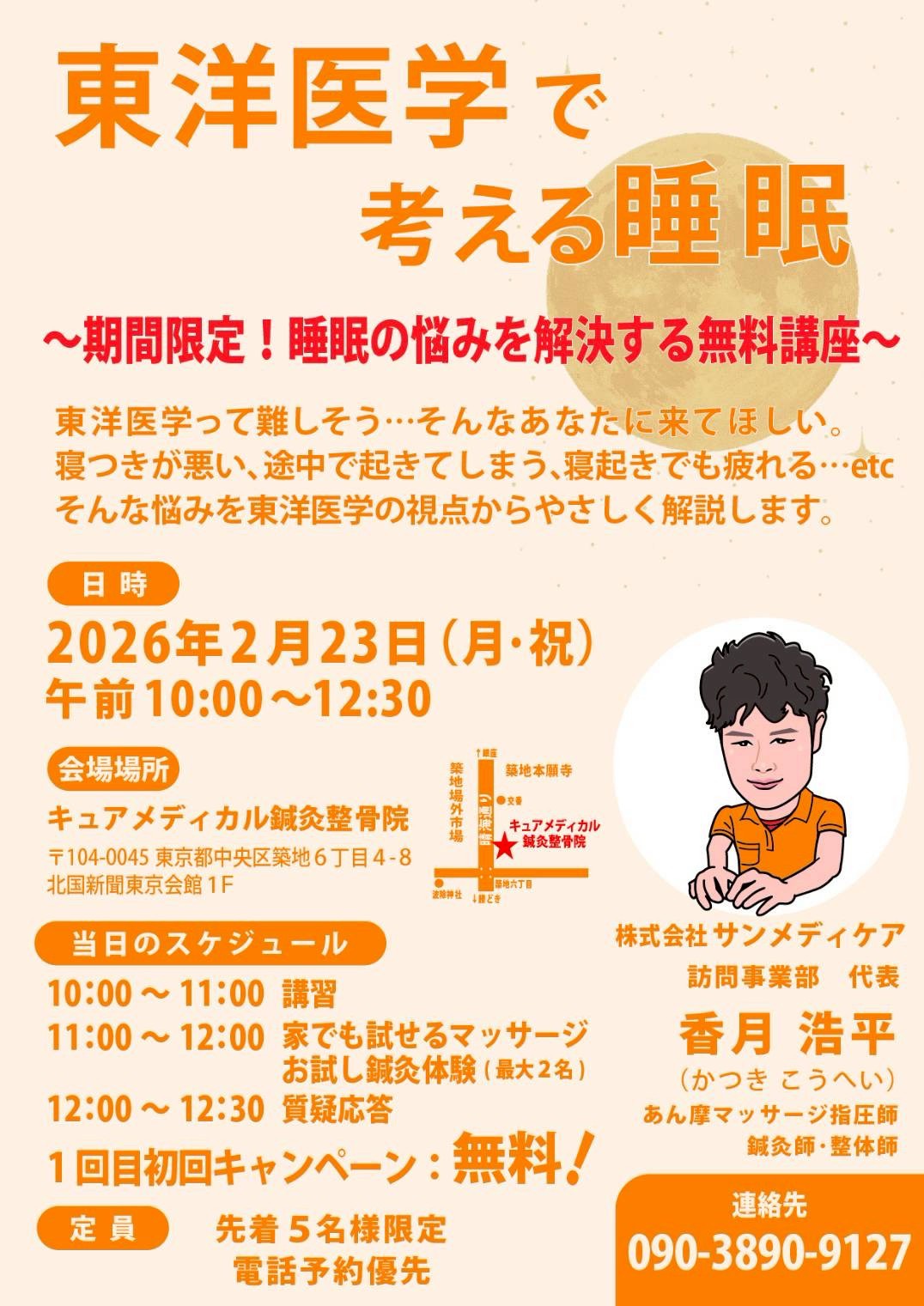 本講座では、東洋医学の視点から睡眠のメカニズムを紐解き、自然な眠りを取り戻すためのセルフケア法をお伝えします。